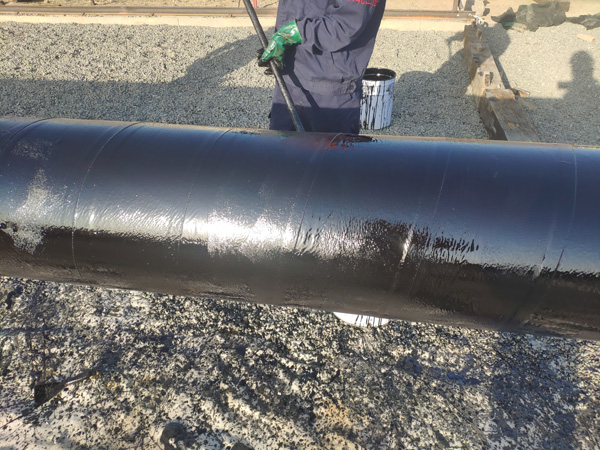 3、質(zhì)量檢驗。防腐層施工后靜置自干,固化后按國標(biāo)GB 50268-2008、中石化SH 3022-2011、SH3533-2013、中石油行標(biāo)SY/T 0447-2014和HG/T 20679規(guī)定的方法,進(jìn)行外觀、厚度、電火花檢驗和粘附性檢查。