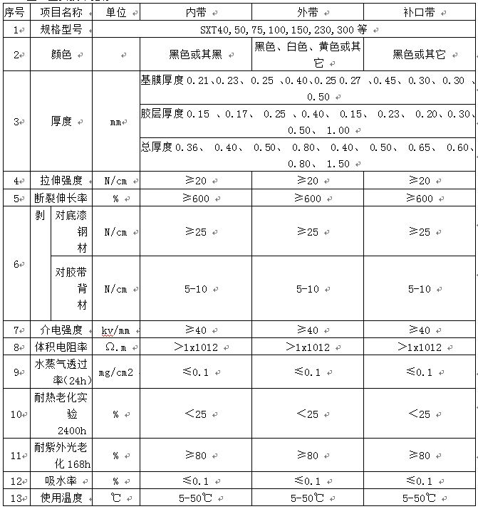 5、品種、規(guī)格、顏色齊全,包括防腐帶(內帶)、保護帶(外帶)、補口帶、防腐底漆及施工機具等。